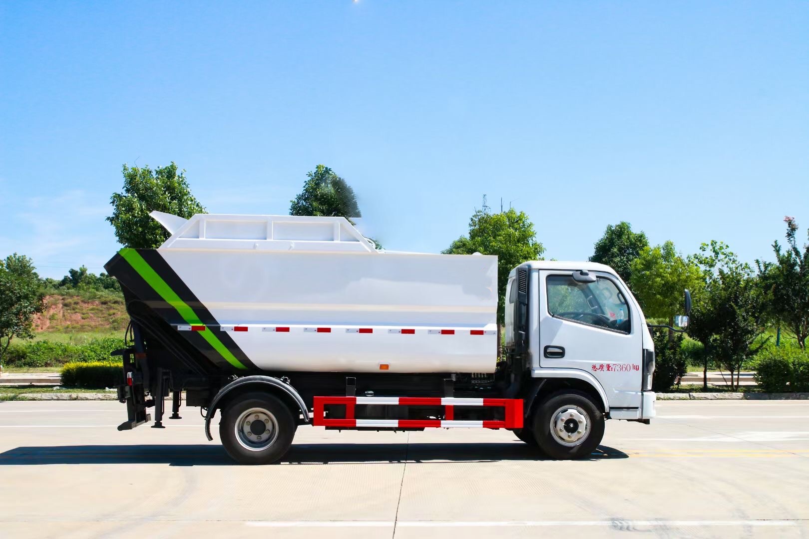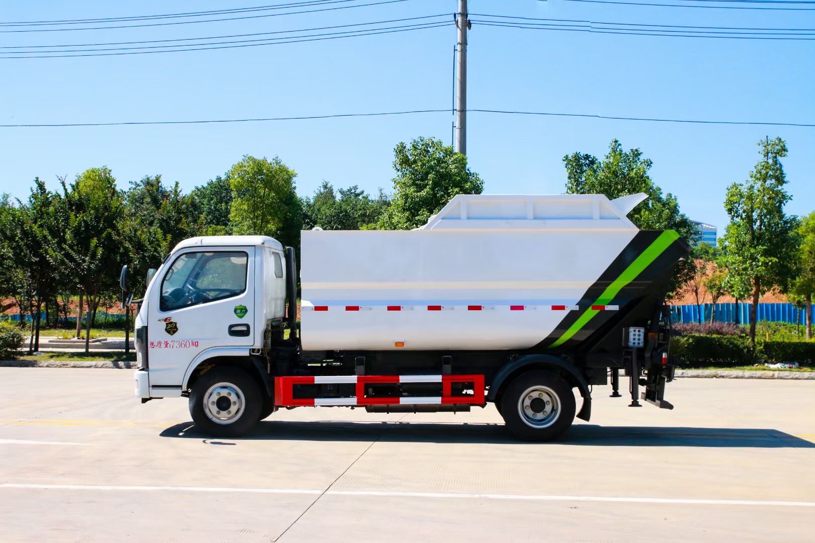 該車型是我公司根據環衛市場需求開發的一種新型垃圾車,選用東風公司生產的二類汽車底盤。由垃圾箱、翻桶機構、舉升機構、刮板及滑板壓縮機構、液壓系統和電氣系統等部件組成。具有外形美觀、駕駛舒適、操縱方便、機動靈活、可靠性高、運營成本低、上料效率高等特點。適用于城市、鄉鎮的垃圾收集轉運,箱體采用船型斗結構,徹底解決了垃圾運輸過程中的污水滴漏等問題。