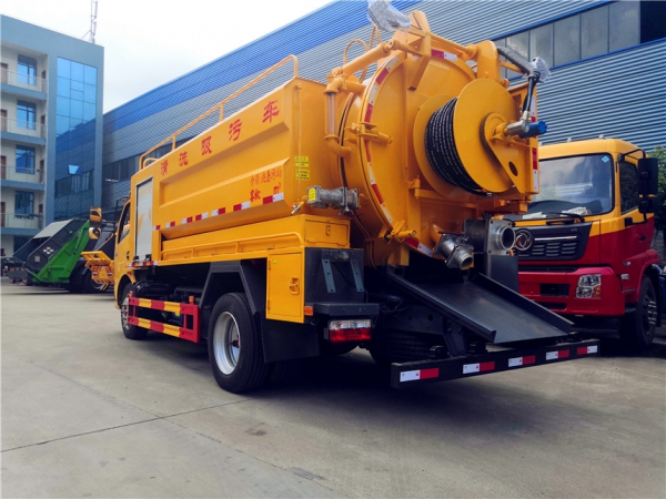 吸污部分:7方污罐,罐體6mmQ235優質碳鋼,配淄博SK-12水循環泵,8米吸污管一根,進氣管加過濾網,防溢閥加高,后蓋卡扣鎖緊,前視污亮管,后尾部加裝1個力拓牌**mm的球閥吸污口150mm排污口,罐體帶舉升功能,后門帶液壓開啟。