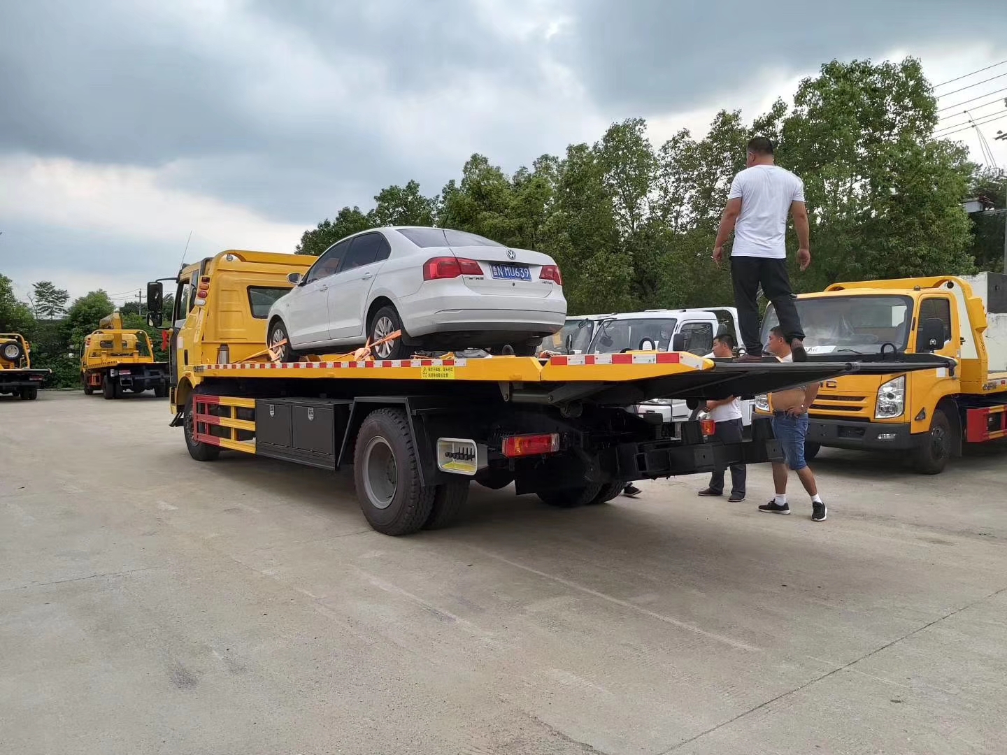 上裝配置:主板尺寸長(zhǎng)7米,液壓翻轉(zhuǎn)尾板尺寸長(zhǎng)1.2米,寬2.55米。10噸板,8噸絞盤,10噸后托臂。托叉座1套,前橋拖叉3套,鋼板拖叉1套,電氣系統(tǒng)1套,后工作燈2只,三角限位1對(duì),工具箱2個(gè),綁帶6根。其他標(biāo)配。